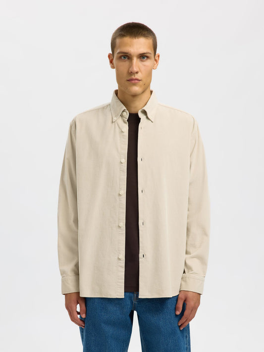 En réduction !Chemise en velours côtelé fin beige - Selected