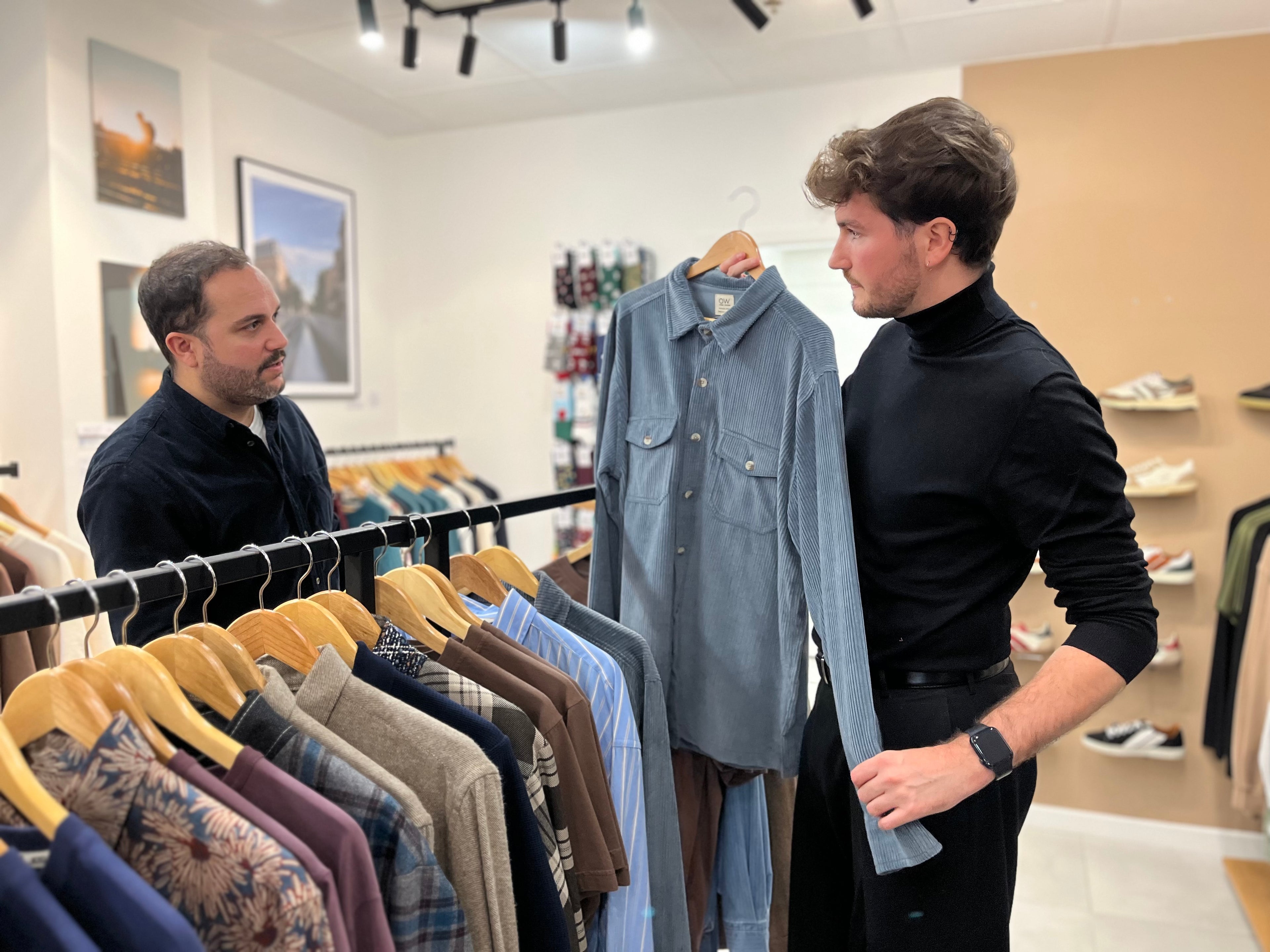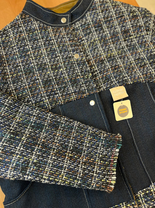Veste upcyclée réversible en tweed bleu/lainage à carreaux- FromStuff