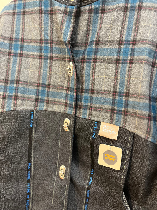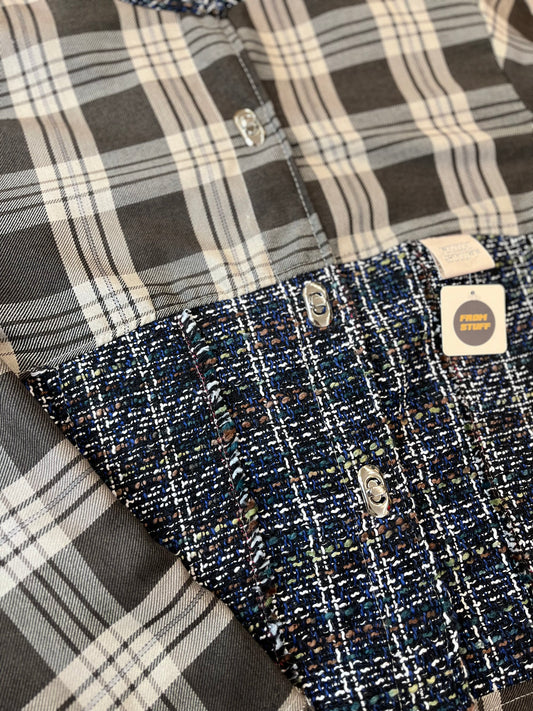 Veste upcyclée à carreaux Gris/Tweed bleu - FromStuff