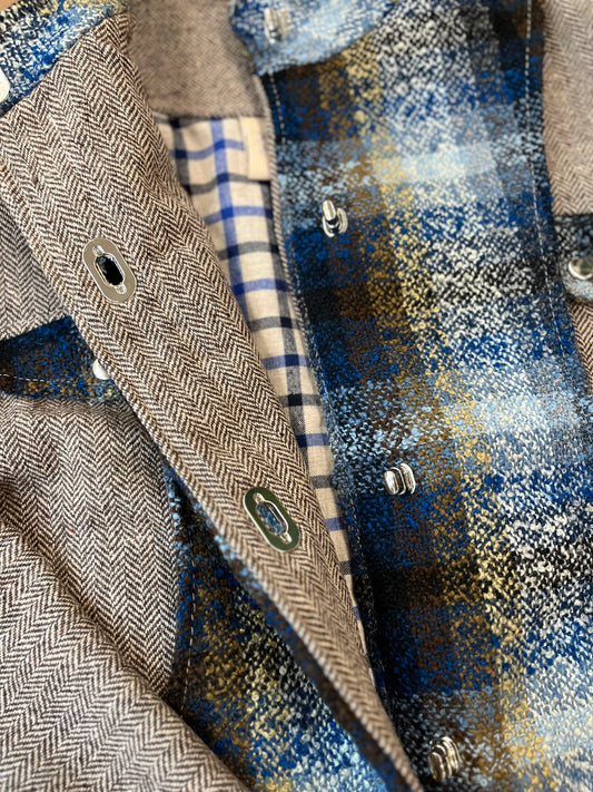 Veste upcyclée à carreaux Gris/Tweed bleu - FromStuff