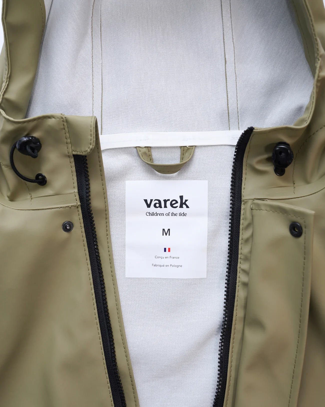 - Les cirés Varek sont fabriqués en coton épais de 380 gsm avec un revêtement 100% PVC pour une imperméabilité totale de la toile.