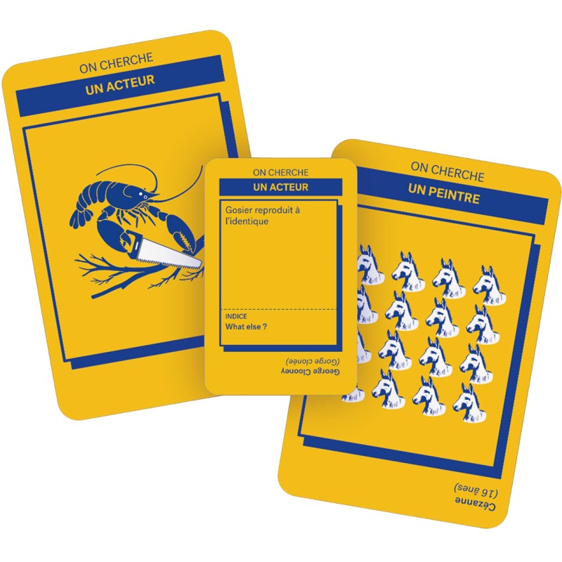 Un jeu de cartes drôle et convivial de devinettes et jeux de mots pour tester vos connaissances ! Vous pouvez jouer seul ou en équipe, les combinaisons sont illimitées !