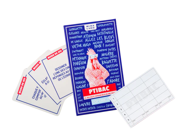 Le Ptibac Cocorico c’est le vrai Petit bac Revisité et modernisé. Le jeu mythique revu avec des catégories lié à la France (culture, lieu, caractère, …).