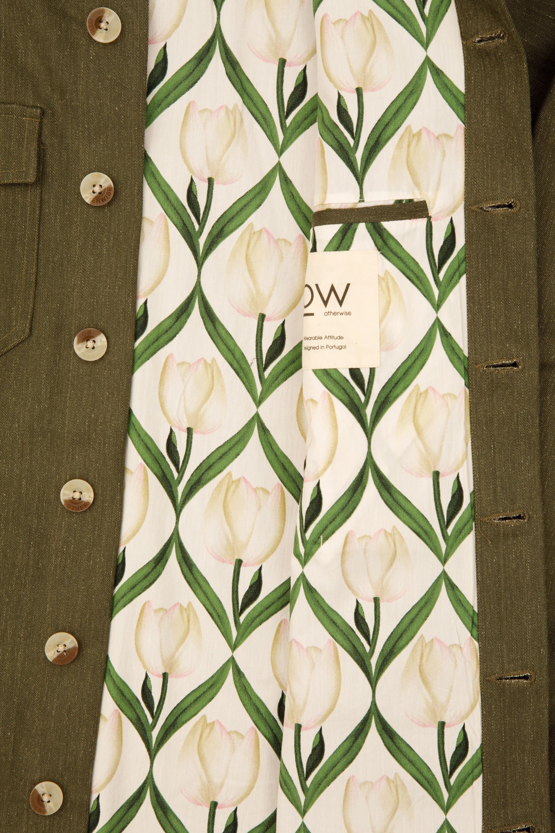 Veste légère 100% coton, chaude et confortable, réalisée en édition limitée. Ses doublures uniques sont confectionnées à partir de chutes de tissus, dans une démarche zéro déchet qui s’inscrit pleinement dans l’esprit slow fashion.