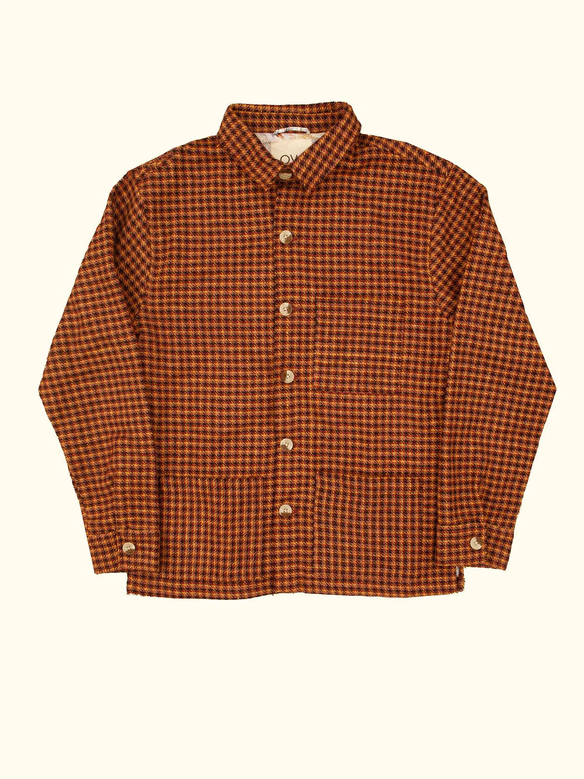 Veste en laine recyclée à carreaux, chaude et confortable, réalisée en édition limitée. Ses doublures uniques sont confectionnées à partir de chutes de tissus, dans une démarche zéro déchet qui s’inscrit pleinement dans l’esprit slow fashion.