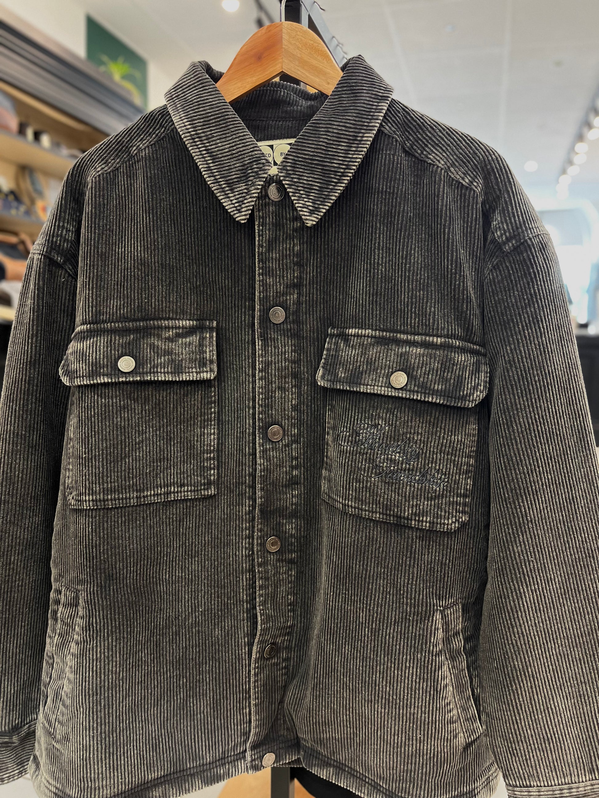Veste "Looks Like Sherpa" en velours côtelé grey washed doublée sherpa - Ementa